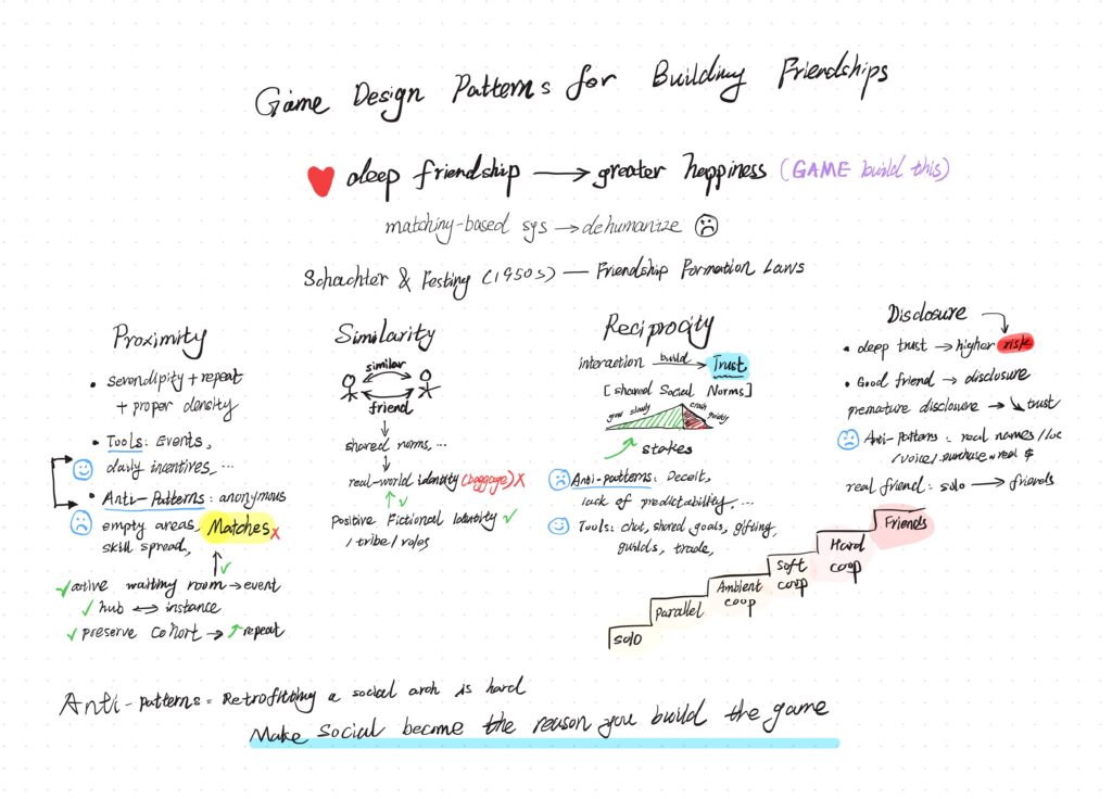 Sketchnote: Game Design Patterns for Building Friendships (w/ Optional Challenge)