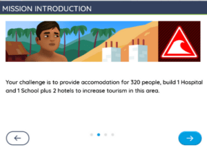 Working with a budget, players learn of the risks posed by natural hazards as they explore the area, and learn of ways to build defenses to protect against them, like decreasing the amount of flat land and increasing building development.