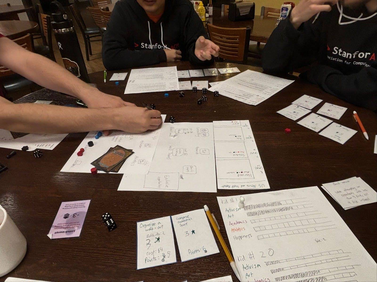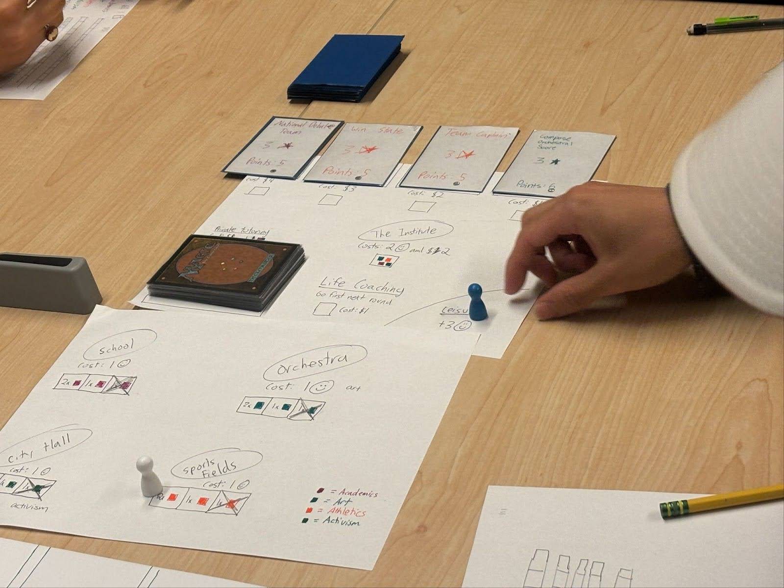 - Since talent cards felt very exciting, we changed the main skill-building mechanic to take on their form. Instead of choosing from the same locations every round, new activity cards would be dealt out each round for players to consider.