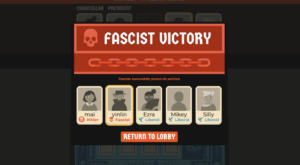 Secret Hitler is a social deception board game created by Max Temkin, Mike Boxleiter, and Tommy Maranges, who make up the publishing company Goat, Wolf, & Cabbage LLC. It’s meant to be played by groups of 5-10 people, with an age range of teens and up. Players take on roles as members of the fascist or liberal parties of a Weimar Republic-era Germany, with each side trying to pass a number of their own policies or get the Hitler player elected Chancellor (if you’re a fascist) or successfully root out “Hitler” (if you’re a liberal). While there are ways to eliminate players, the core of Secret Hitler, unlike deception games like Among Us and Mafia, does not involve voting on players to eliminate each round. Killing Hitler is great, but simply keeping Hitler and the fascists out of power also creates a winning scenario.