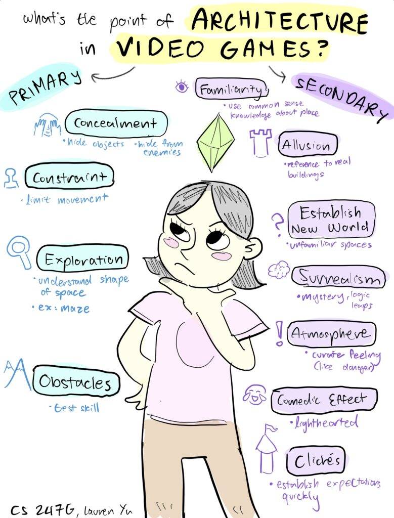 Sketchnote: Designer’s Notebook: The Role of Architecture in Videogames — Dalynn Miller April 28, 2025