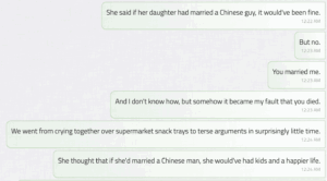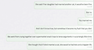 The target audience for this game indubitably includes furries, given the fact that there are two versions of this game — one in which the player is a coyote married to a cat; the other in which the player is a white man married into a Chinese family. However, beyond this surface-level demographic, You’re Gone speaks to anyone who has experienced the undiscriminating and disorienting aftermath of loss and grief. The game successfully draws empathy towards those who have experienced loss in their lives before (and evokes a light feeling of sadness and loss), through an immersive SMS user interface, realistic texts (that I could envision sending), and the hauntingly subtle time stamps reflecting moments of indecision or desperation. This is a game for those who have failed to move on, for those who have, and for those who are still trying.