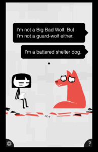 Adventures with Anxiety! (link) is a game by Nicky Case targeting anyone who experiences anxiety—and even potentially people who have loved ones who experience anxiety (so most people). It is a visual novel on an HTML5 platform. You play as the “anxiety wolf” of a person who is navigating their experience with anxiety in college. Scenes are set up like “fight scenes” in combat games where you get points for “warning” your human about potential dangers and “protecting” them from harm.