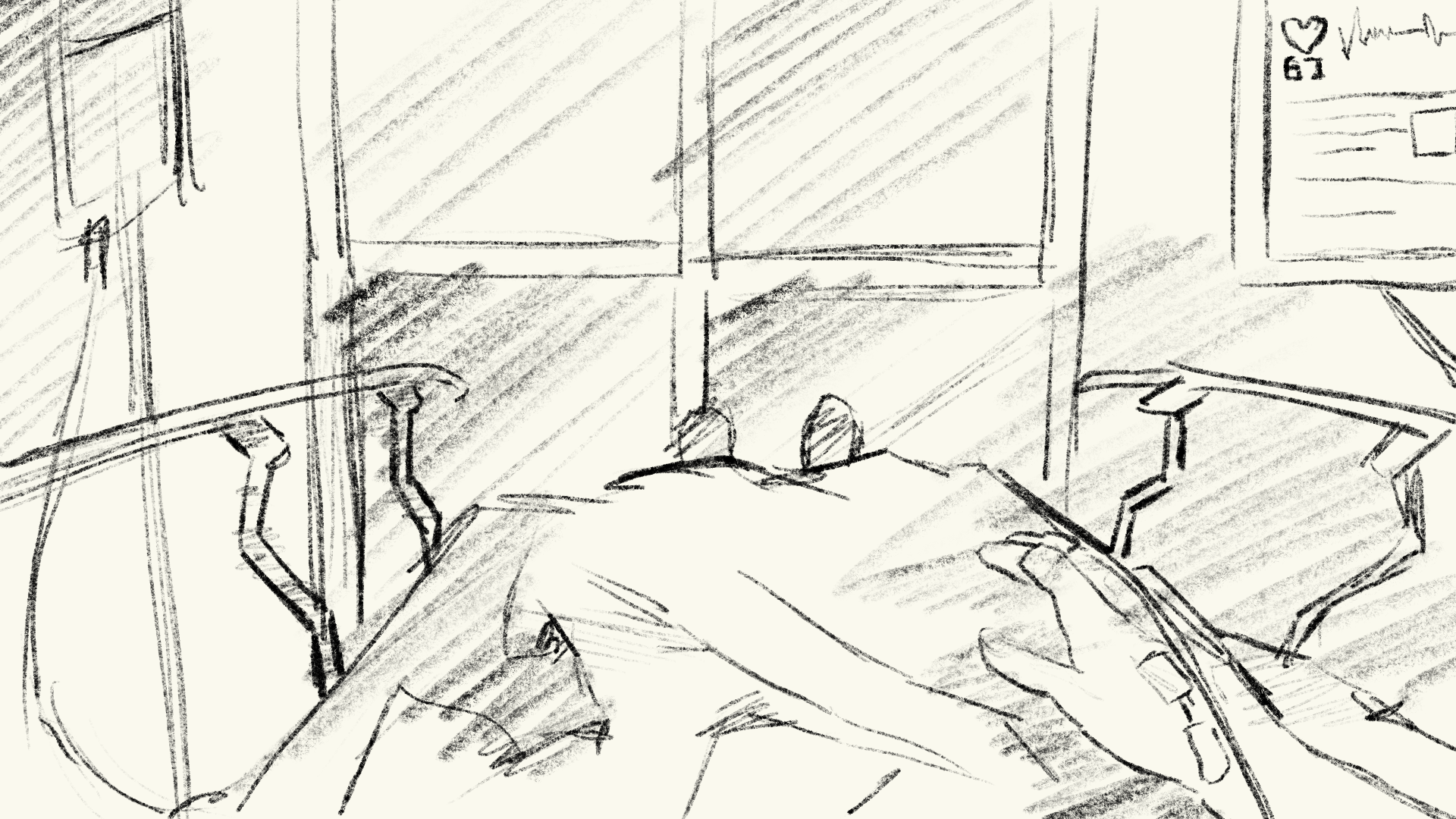 POV Lucas and I in the hospital after overworking on making Unity and Yarn Spinner work