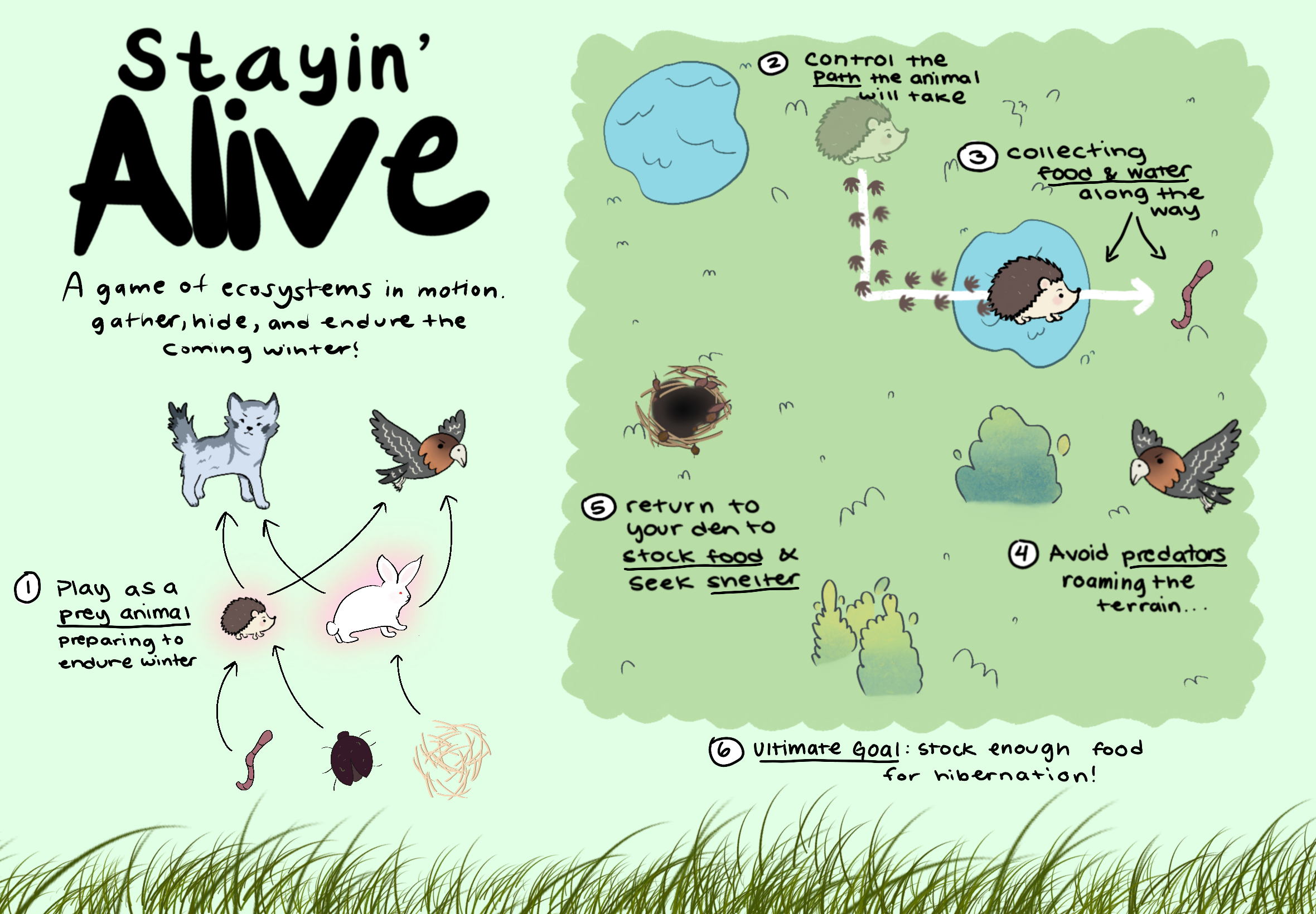 Overall, the ecosystem map explains why animals behave the way they do in nature, while the game map focuses on how players experience those forces through mechanics and choices. Both maps center survival, but the game version makes the system more strategic and playable.