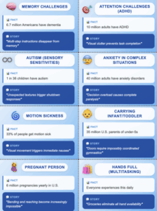 The primary goal of our game is to encourage creative and inclusive design thinking by placing players in scenarios that require empathy, adaptability, and ingenuity. Too often, accessibility is treated as an afterthought in the design process; this game brings it to the forefront in a way that is engaging and approachable. By gamifying the process of user-centered design, players gain both awareness of the barriers faced by populations with accessibility needs and hands-on practice in applying design principles to address them.