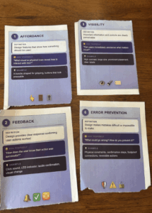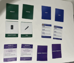 When asked about revisions, players felt the gameplay itself was balanced and didn’t require further changes. The only consistent suggestion concerned the visual design: the color palettes for the user cards and the design principle cards were too similar, making it harder to distinguish categories quickly during play. They recommended introducing more distinct and complementary colors across all three card types to create clearer visual separation and reduce confusion. Going forward, we’ll iterate on the graphic design to ensure each category has its own unmistakable look and feel.