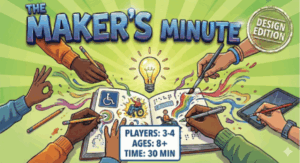 Our P4 project builds upon our P1 game, The Maker’s Minute, which centers on the creation of an interactive design drawing and pitching game that teaches players to think creatively about accessibility while practicing fundamental design principles. The game combines elements of storytelling, improvisation, and visual thinking to engage players in designing for real-world accessibility challenges. Through timed drawing and pitching rounds, players are prompted to generate imaginative, creative, yet practical solutions for diverse user needs and populations, from those with visual impairments to learning disabilities.