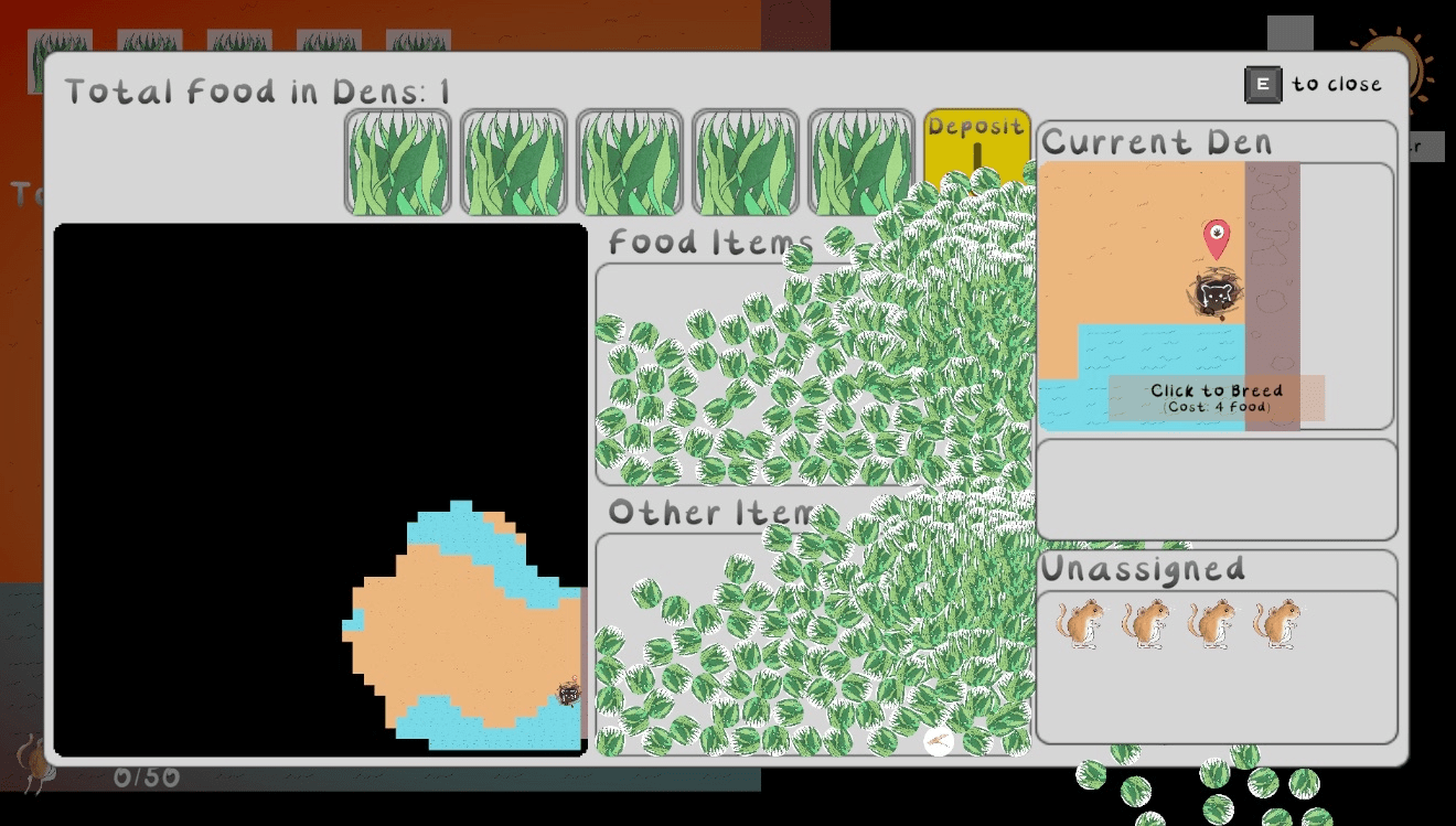 In P3, I developed Stayin’ Alive with Leyth, Krystal, and Ngoc, where you play as a Stephens’ Kangaroo Rat trying to survive in an unknown world. We had a decently large team of four, which meant that although we had a lot of hands on deck to help with assets and programming, we also had to streamline our workflows to ensure that we didn’t step on each others’ toes. Through Leyth, who is an exceptional programmer, I learned a lot about co-working in the Unity Engine and following better transparency and architectural practices to reduce frustration later on in the development process. (Spoiler: I continued to work on this for P4, and it became very unwieldy with how it was coded up initially.) Through implementing the complex mechanics of this systems game, I learned a lot about the A* pathfinding algorithm and game balancing, especially because there were many economy systems in the game that were dependent on each other. If you ate all of the grass, the rabbits would die out, leading the coyotes to hunt you down from all the way across the map (after hitting their critical hunger threshold). As someone who hasn’t really expressed much interest in representing real-world systems, it was fascinating to turn ecosystems into a video game. Similarly to P1, it felt like I had to find a compromise between an accurate representation of the system and a fun game. From how our playtesters reacted to our game, I’d say we did pretty amazingly on this front!