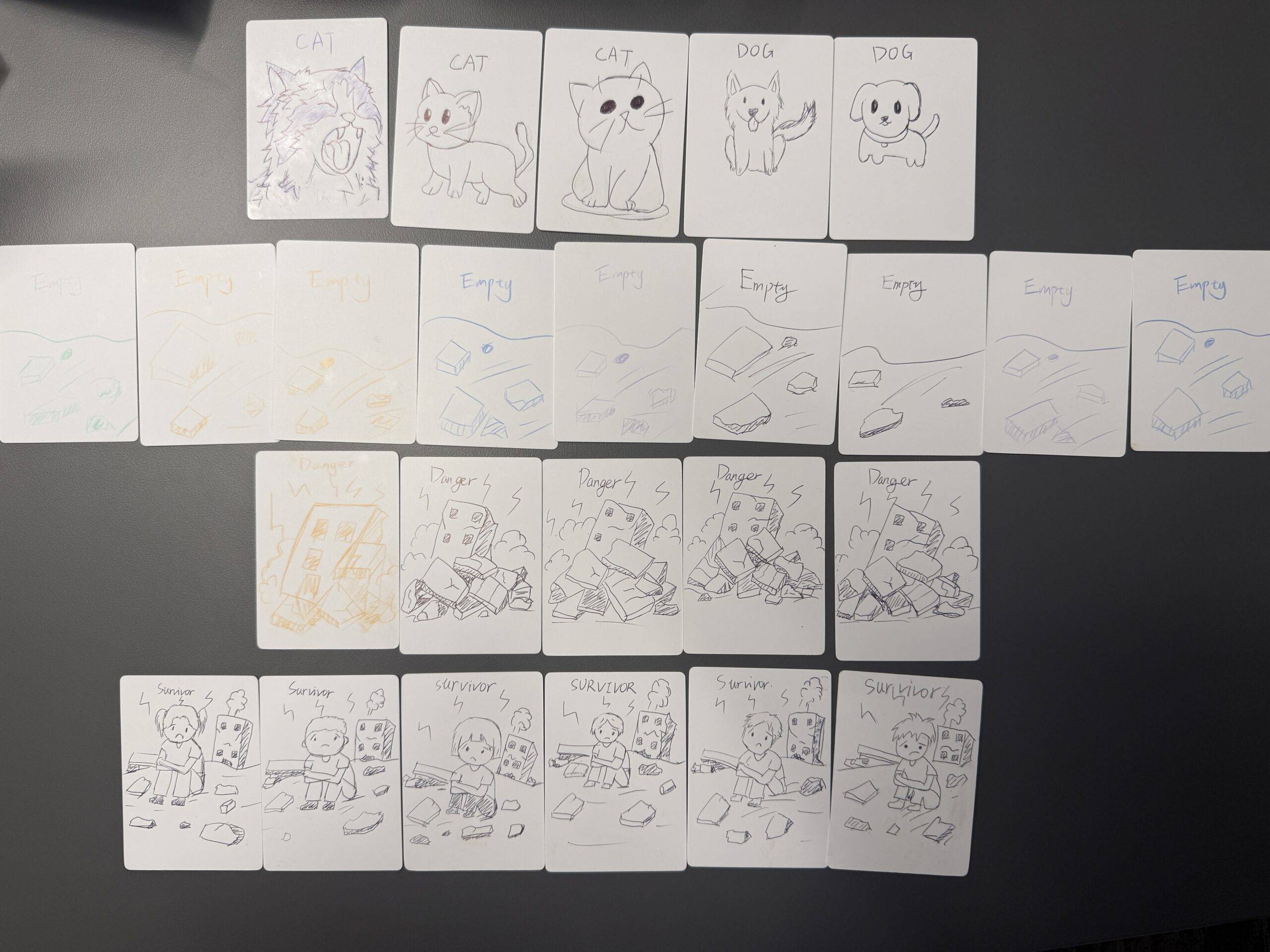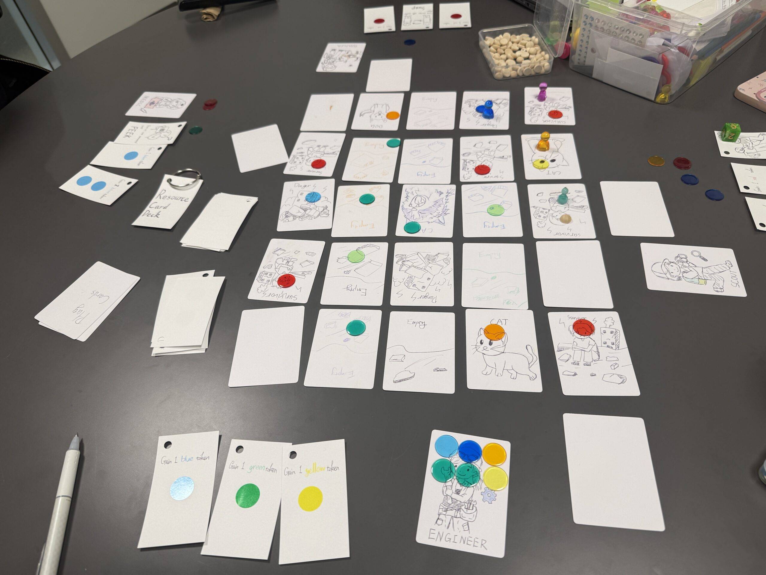 Our first playtest revealed that the game was mechanically more confusing than we expected. Originally, we designed 7 different action card types, but each card only displayed the action name without explanation or visual support. Players frequently forgot what each card did and had to repeatedly ask for clarification, which interrupted the flow of gameplay.