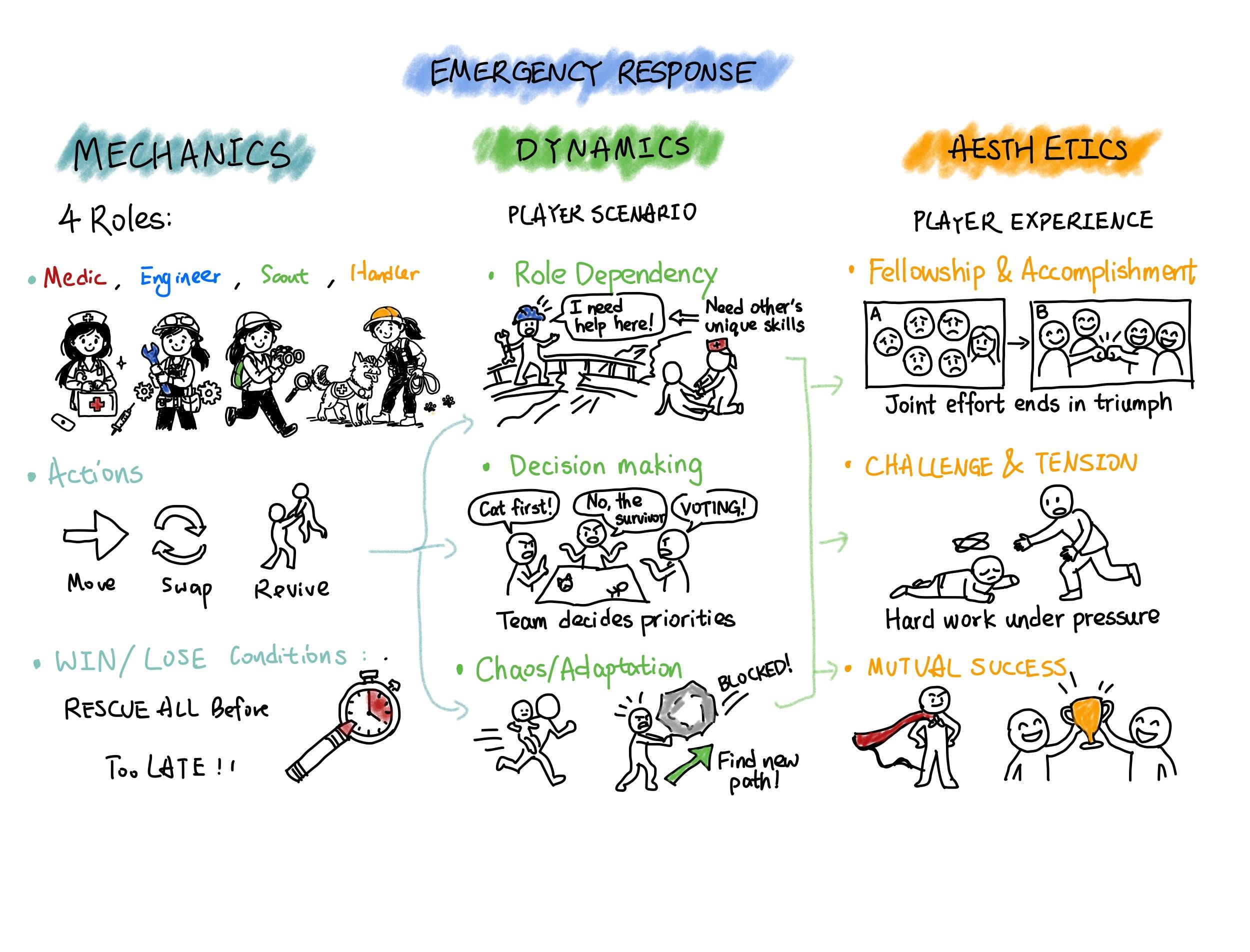 Emergency Response is a multiplayer cooperative social game designed around teamwork, communication, and shared responsibility. The core idea of the game is to make players work together as a rescue team, with each player takes a unique role such as Medic, Engineer, Handler, or Scout. Each role contributes a specific ability that the group must rely on to succeed. They save survivors and pets while removing hazards from a shared space. However, what makes the experience different from other social simulation games is that people have to rely on each other.